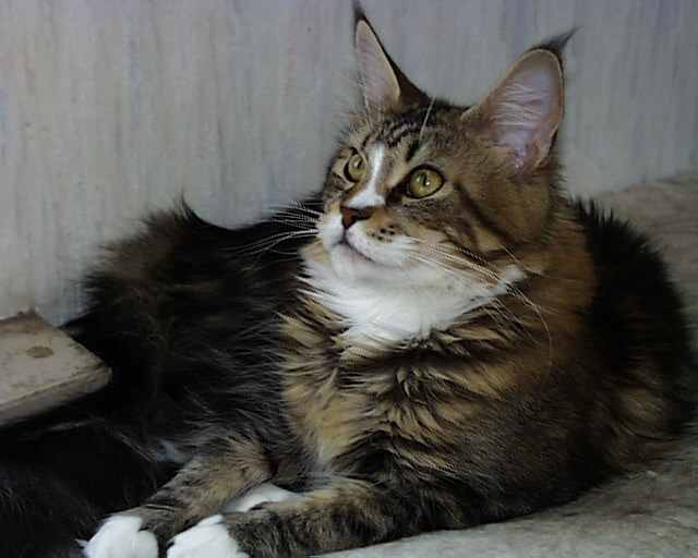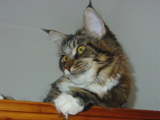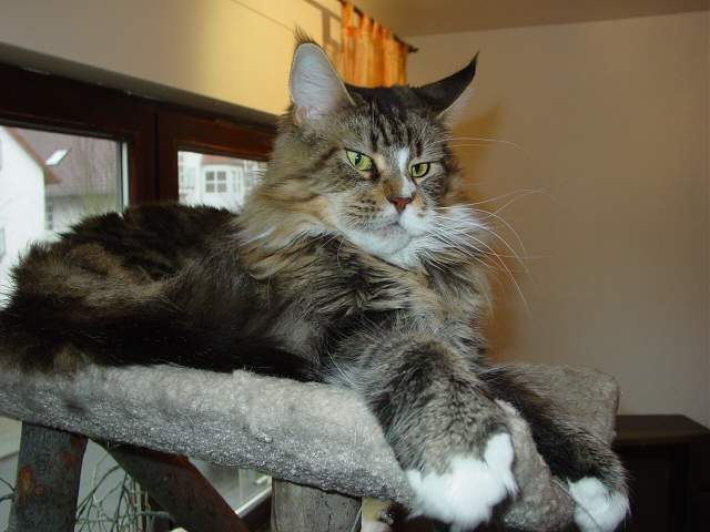 KITINU Geboren am: 13.02.2002 Kitinu ist eine liebe Schmusekatze, die alles um sich vergißt, wenn sie Streicheleinheiten bekommt. Sie ist mit ihrem langgestreckten Körper auf hohen Beinen, der kantigen Schnauze und den großen gut gesetzten Ohren eine Maine Coon Katze mit allen Vorteilen ihrer Rasse. . |